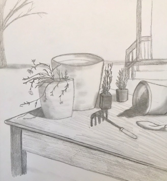 Following the chart to 52 drawings this year. This week’s subject is tool. I don’t know about you, but I’m thinking spring, so I decided to draw some gardening tools!