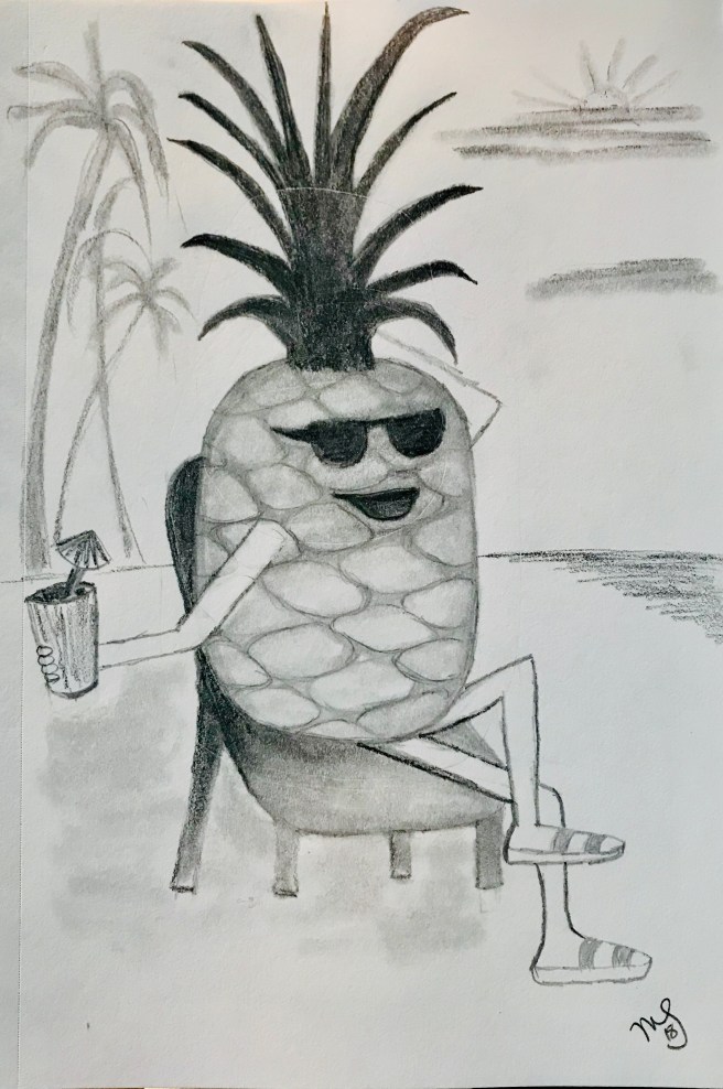This ridiculous sketch is supposed to be Sir Isaac Newton. I realize he looks more like an early ’70’s prog rocker but, oh well. In my defense, I had very little time to work on this. 😜 Nevertheless, I didn’t want to skip a week so close to the finish!