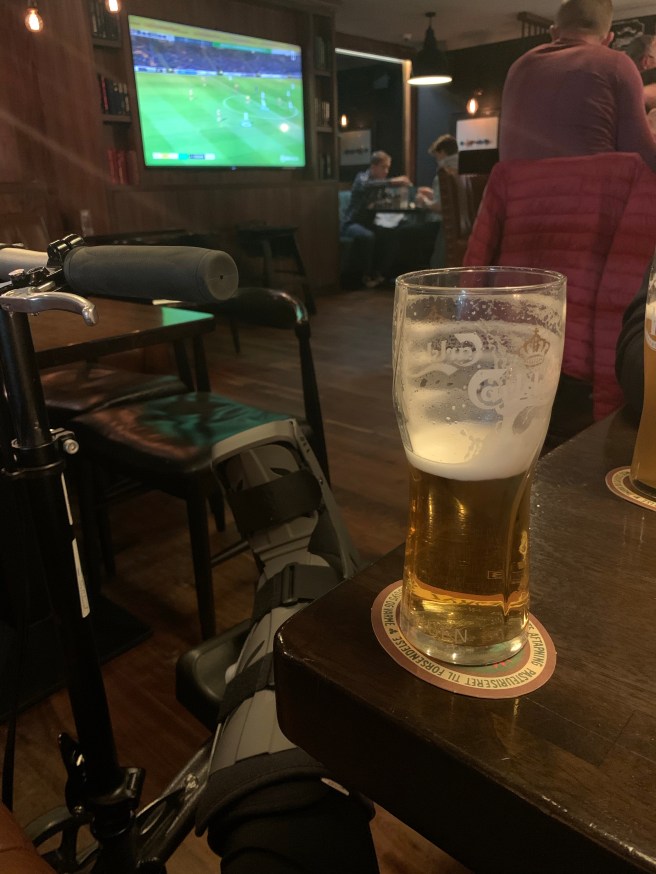 I guess if you try to look on the bright side, this injury happened in January when the weather is miserable and the days are short. By spring time, I should be healed up enough to go outside and enjoy the sunshine and milder temperatures. Well, maybe not sunshine so much… it does rain all the darn time over here. Nonetheless, I have two weeks to go till my next follow up appointment and I’m hoping for a good report. In the meantime, I’m getting around the best I can: